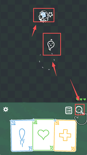2、每张卡牌拥有明确作用划分,绿卡回血保障续航,蓝卡输出稳定打击,红卡爆发清场,三者协同形成完整战斗闭环,增强策略层次感。