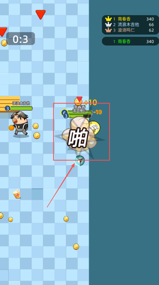 2、拾取各种类型肥皂道具瞄准对手进行投掷攻击操作,掌握投掷技巧和策略应用方法提升命中率。