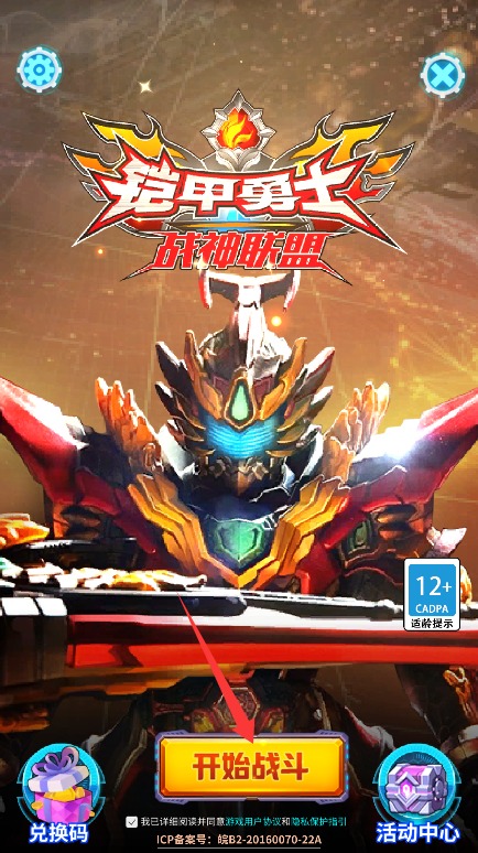 1、启动游戏后点击开始战斗按钮,即可进入铠甲勇士集结的团队作战世界。