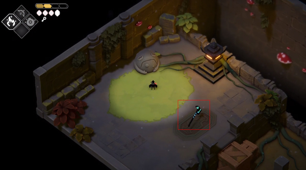 2. 沿着道路前行,开启机关后,大门便会打开。