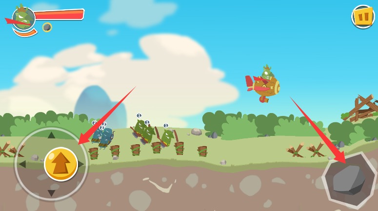 3、通过左侧虚拟方向盘控制飞行方向,右侧按键释放各类攻击与特殊技能。
