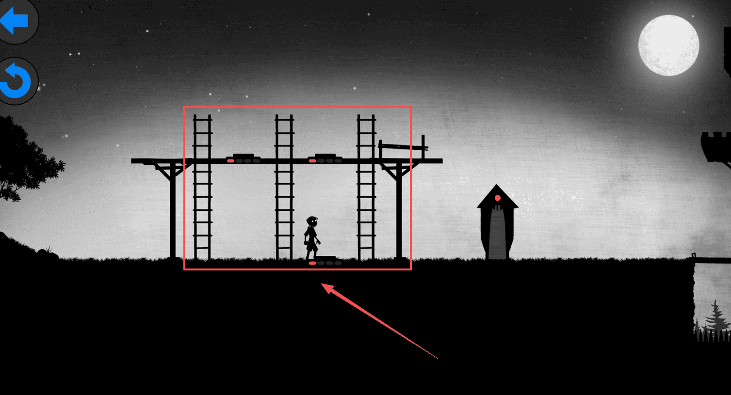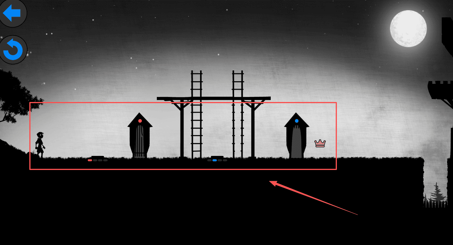 3、第33关需注意红门状态差异,最终必须经由红色传送门抵达梯子区域,初始选择绿色传送门开始行进。