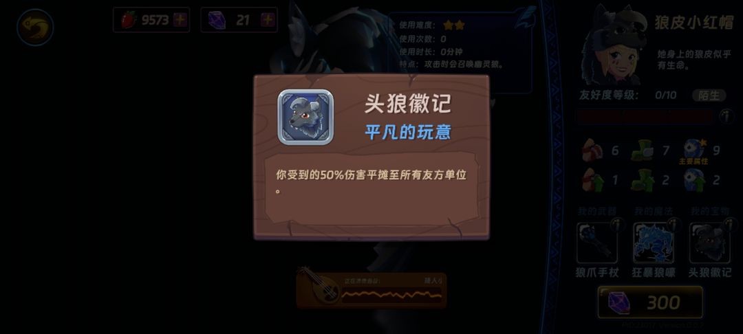 狼皮小红帽的初始宝物,召唤系核心宝物,想玩召唤系可以带,自带召唤物的角色也可以带,比如亨特和3000卫士。值得一提的是,这游戏的召唤物是可以被你攻击到的,当然敌人的攻击也会伤害其他敌人。
