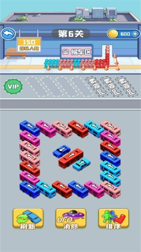 包含普通、限时、障碍等多种关卡类型,且候车区乘客数量、车型会随机变化,每次关卡刷新还会生成全新车辆排列组合,避免玩法单调。同时还支持 360° 旋转观察立体停车场,能通过视角切换发现隐藏停车位。