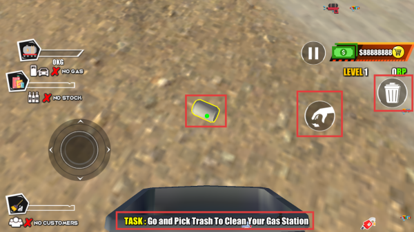 2、购置垃圾桶后,根据下方任务内容,将加油站的所有垃圾捡入垃圾桶中。
