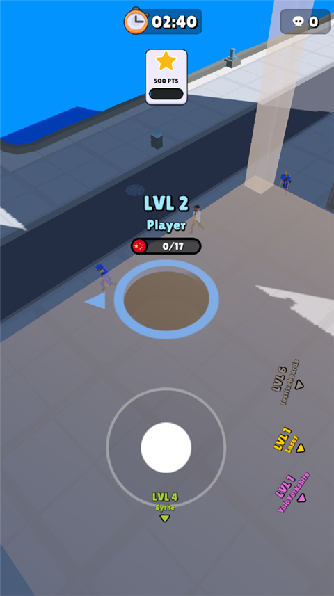2、随着玩家吞噬相应数量后可以升级,升级后的黑洞更大可吞噬的内容也增加