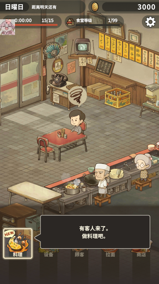 4.有客人来了,我们需要开始做料理了,点击左下角的料理