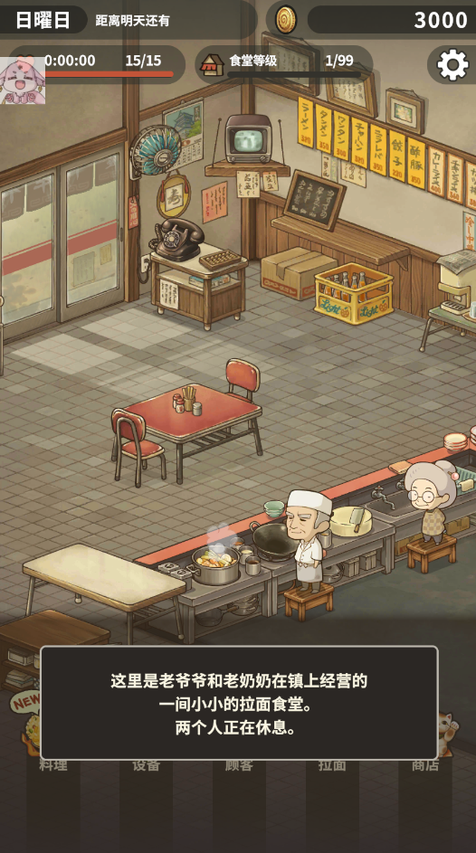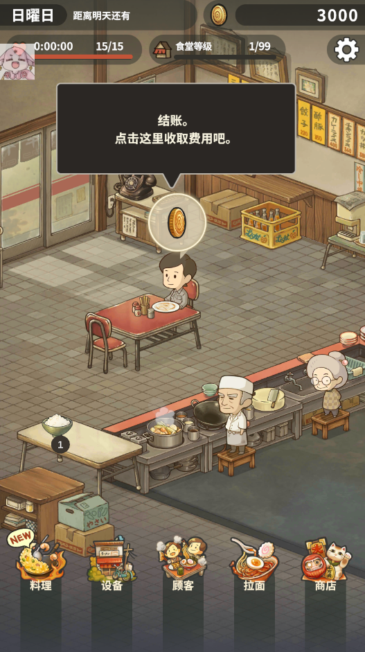 拉面制作与售卖: 玩家根据客人的需求,选择对应的面条与汤底组合。拉面制作完成后,点击食客即可进行服务,赚取金币并提升拉面等级。