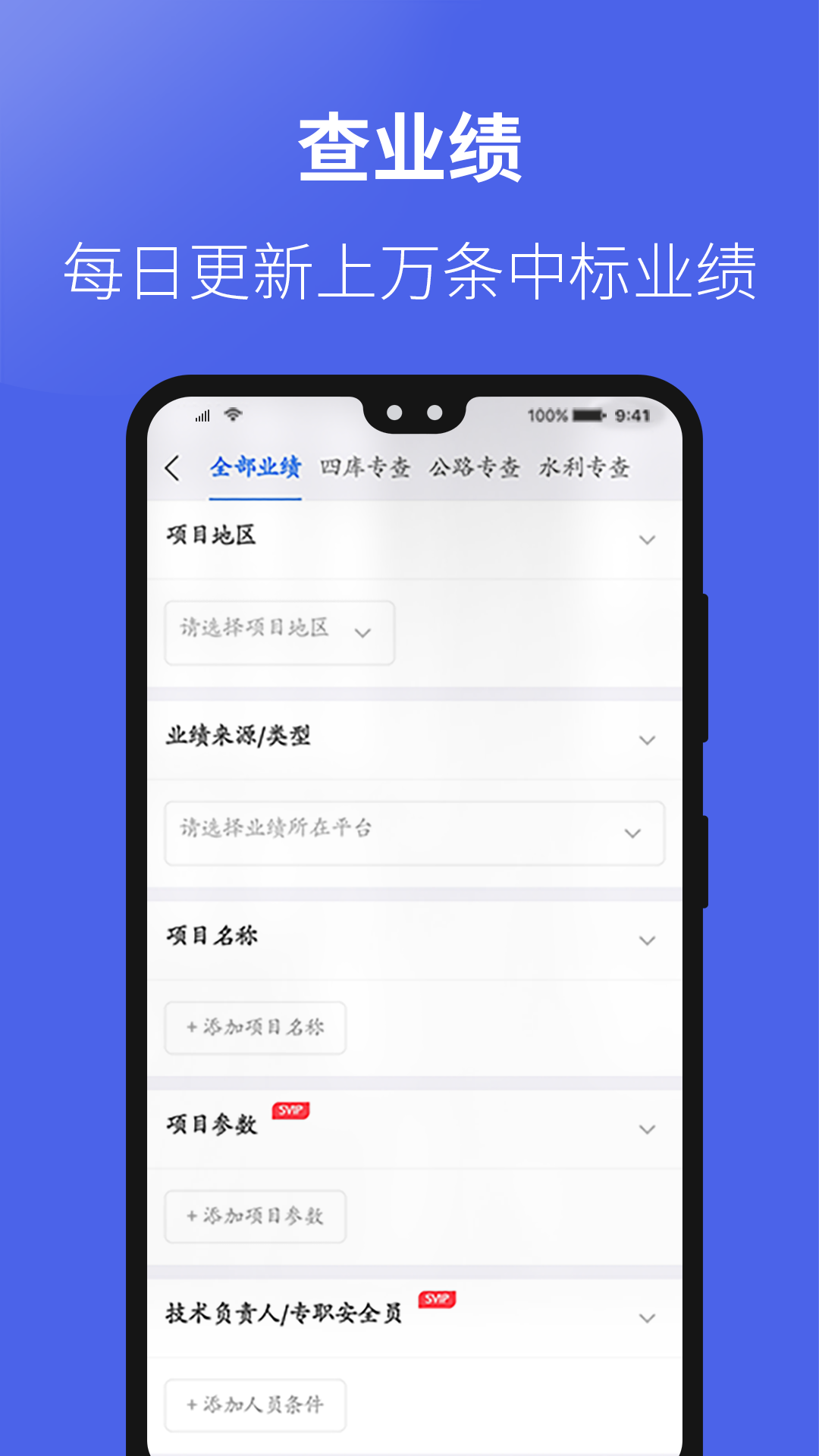 查业绩:全国中标公示公告、四库一平台业绩、各市项目库业绩、施工/勘察设计业绩、查相似业绩、项目经理业绩、业绩来源、官网中标截图,核实业绩真假、管理本企业绩;