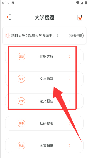 而且它还为大学生提供扫码搜书、图文扫描、大学搜题、大学生作业答案交流社区等大学生活学习工具。
